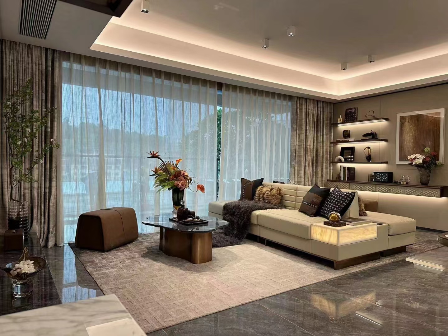 本項目位于廣州市天河區廣汕二路以南,舊羊山以北,包括示范區范圍內的所有室內精裝修工程,含售樓部、示范區范圍內公共區域及樣板房、樣板公共區域、營銷辦公室、下沉庭院兩側辦公室、1#樓公區地下室大堂等室內硬裝修、水電安裝、弱電、智能家居、消防、空調、新風等工程項目。